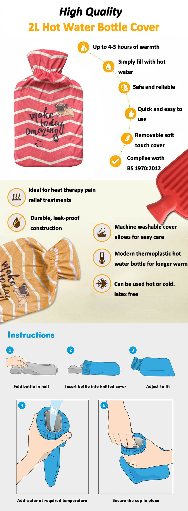 1.BLØDT & FLEECE-OVERDRAG PREMIUM AT BERULLE DIG 2.HOLDER DIG VARM I TIMER 3.HOLDBAR, SIKKER AT BRUGE OG MILJØVENLIG 4.LET AT BRUGE Denne varmepakke leveres med et luksuriøst fleece-varmtvandsflaskedæksel. Den er ideel til en hyggelig aften med et glas vin på sofaen. Især om vinteren...