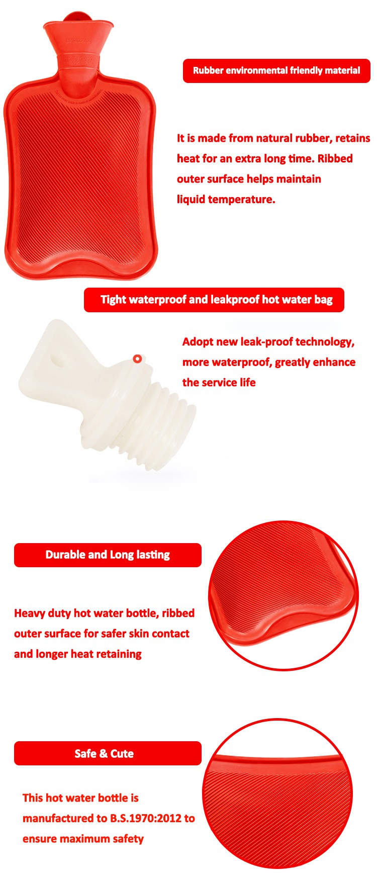 Flasken er i overensstemmelse med BS1970:2012, den globalt anvendte britiske sikkerhedsstandard for varmepakker til smerte, hvilket betyder, at den er tæt og holdbar. Flasken og låget er vegansk venligt og baby- og børnesikre. FORSIGTIG: en voksen bør altid overvåge og aldrig fylde med kogende vand.